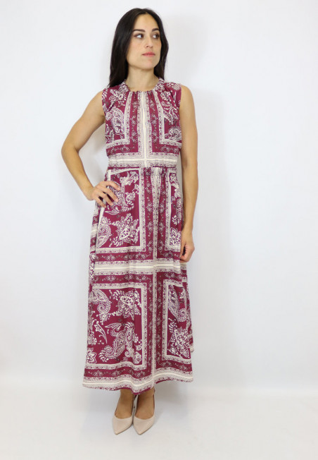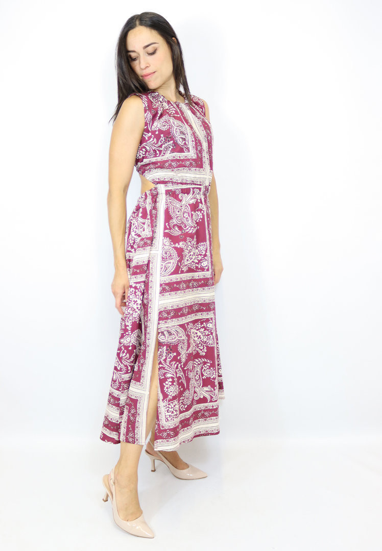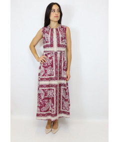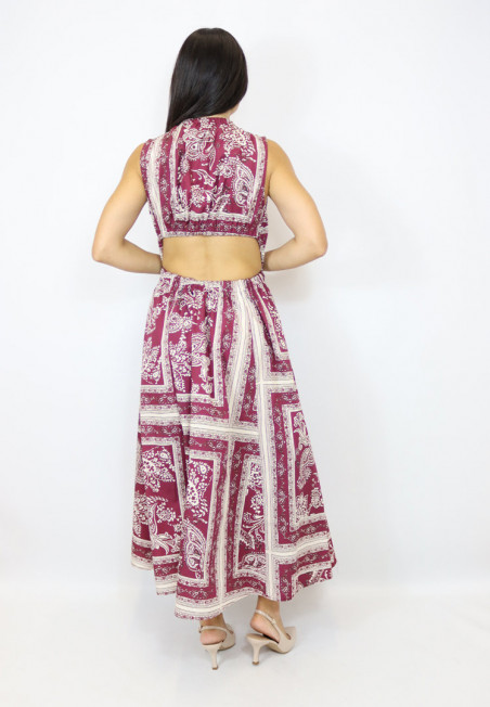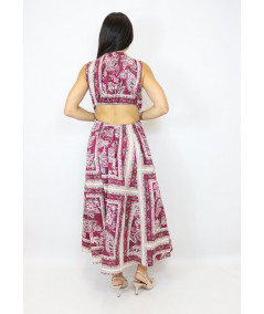 Abito di Vicolo in cotone con elastico sul collo ed elastico sotto il seno. L'abito presenta uno spacco laterale e nella parte posteriore presenta un oblò con la schiena scoperta.