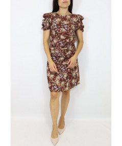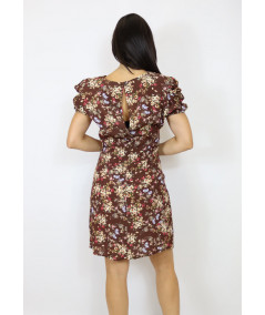 Vestito Vicolo corto con maniche a sbuffo e tessuto drappeggiato in vita. Il vestito ha una mezza cerniera sul retro e un bottoncino per chiusura.