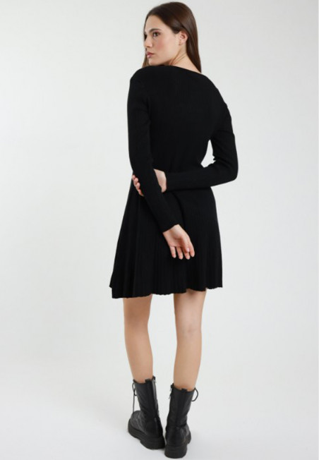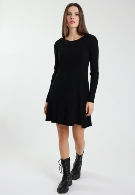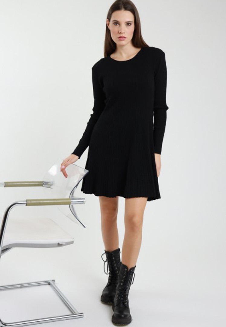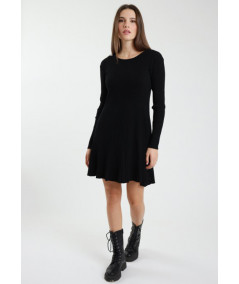 Vestito in maglia a costine dal taglio svasato e scollo tondo.