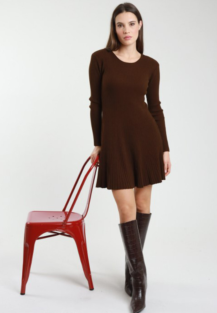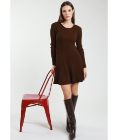 Vestito in maglia a costine dal taglio svasato e scollo tondo.